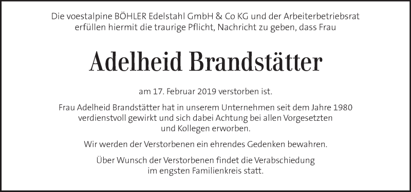 Hier finden Sie alle Traueranzeigen aus der Zeitung, die bisher für Adelheid Brandstätter erschienen sind. Weitere Traueranzeigen, die in der Zeitung erscheinen, werden hier ebenfalls aufgelistet