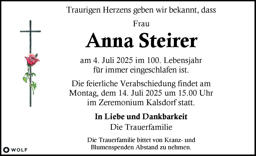 Hier finden Sie alle Traueranzeigen aus der Zeitung, die bisher für Anna Steirer erschienen sind. Weitere Traueranzeigen, die in der Zeitung erscheinen, werden hier ebenfalls aufgelistet