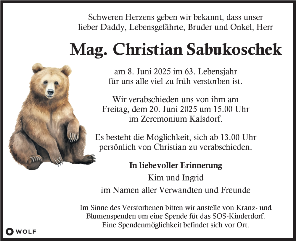 Hier finden Sie alle Traueranzeigen aus der Zeitung, die bisher für Christian Sabukoschek erschienen sind. Weitere Traueranzeigen, die in der Zeitung erscheinen, werden hier ebenfalls aufgelistet