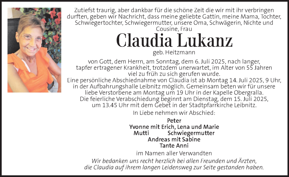 Hier finden Sie alle Traueranzeigen aus der Zeitung, die bisher für Claudia Lukanz erschienen sind. Weitere Traueranzeigen, die in der Zeitung erscheinen, werden hier ebenfalls aufgelistet
