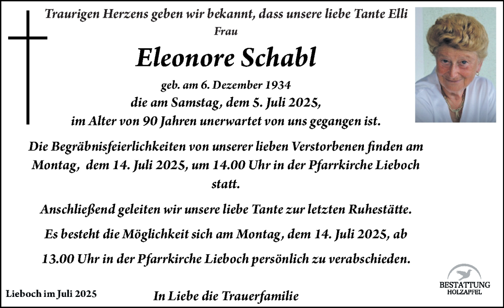 Hier finden Sie alle Traueranzeigen aus der Zeitung, die bisher für Eleonore Schabl erschienen sind. Weitere Traueranzeigen, die in der Zeitung erscheinen, werden hier ebenfalls aufgelistet