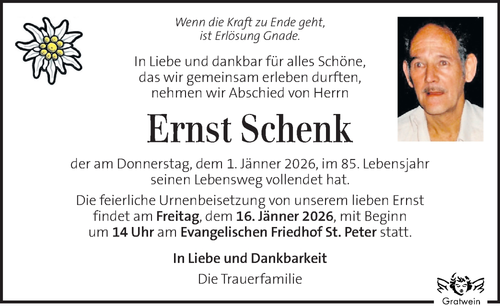 Hier finden Sie alle Traueranzeigen aus der Zeitung, die bisher für Ernst Schenk erschienen sind. Weitere Traueranzeigen, die in der Zeitung erscheinen, werden hier ebenfalls aufgelistet