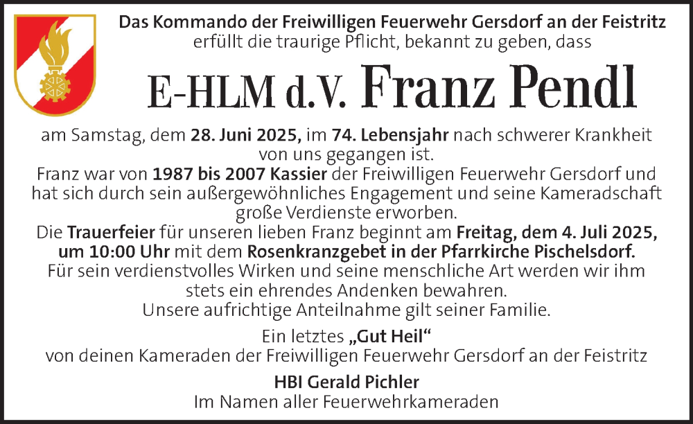 Hier finden Sie alle Traueranzeigen aus der Zeitung, die bisher für Franz Pendl erschienen sind. Weitere Traueranzeigen, die in der Zeitung erscheinen, werden hier ebenfalls aufgelistet
