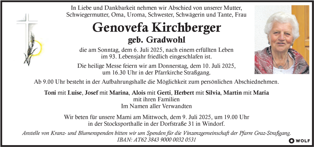 Hier finden Sie alle Traueranzeigen aus der Zeitung, die bisher für Genovefa Kirchberger erschienen sind. Weitere Traueranzeigen, die in der Zeitung erscheinen, werden hier ebenfalls aufgelistet