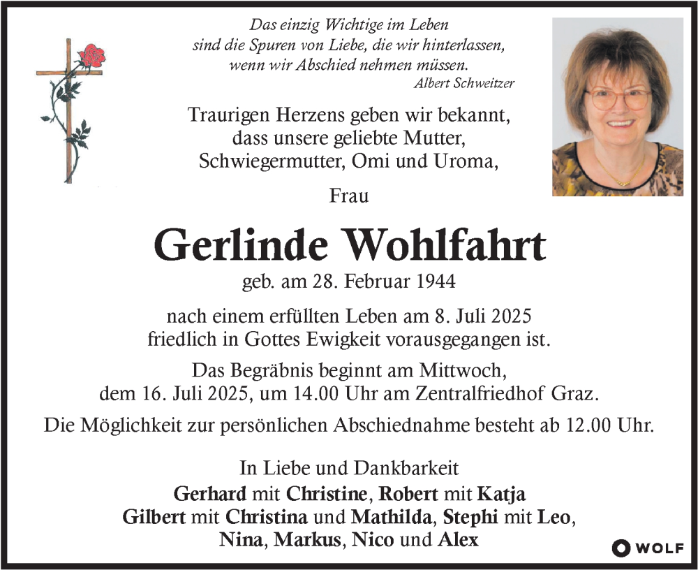 Hier finden Sie alle Traueranzeigen aus der Zeitung, die bisher für Gerlinde Wohlfahrt erschienen sind. Weitere Traueranzeigen, die in der Zeitung erscheinen, werden hier ebenfalls aufgelistet