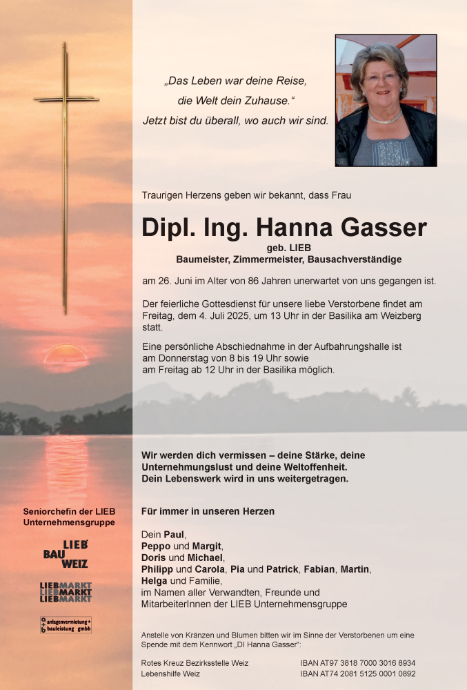 Hier finden Sie alle Traueranzeigen aus der Zeitung, die bisher für Hanna Gasser erschienen sind. Weitere Traueranzeigen, die in der Zeitung erscheinen, werden hier ebenfalls aufgelistet