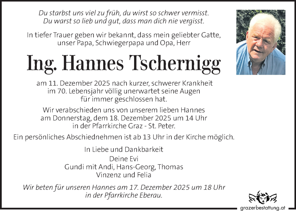 Hier finden Sie alle Traueranzeigen aus der Zeitung, die bisher für Hannes Tschernigg erschienen sind. Weitere Traueranzeigen, die in der Zeitung erscheinen, werden hier ebenfalls aufgelistet