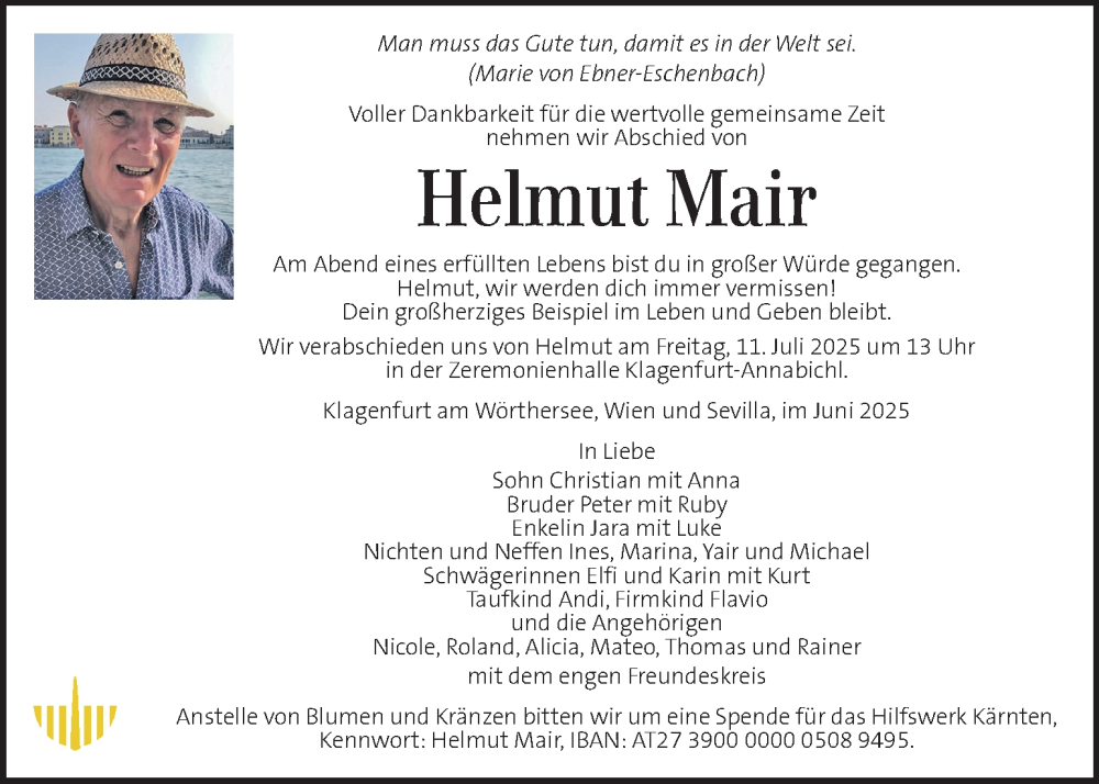 Hier finden Sie alle Traueranzeigen aus der Zeitung, die bisher für Helmut Mair erschienen sind. Weitere Traueranzeigen, die in der Zeitung erscheinen, werden hier ebenfalls aufgelistet
