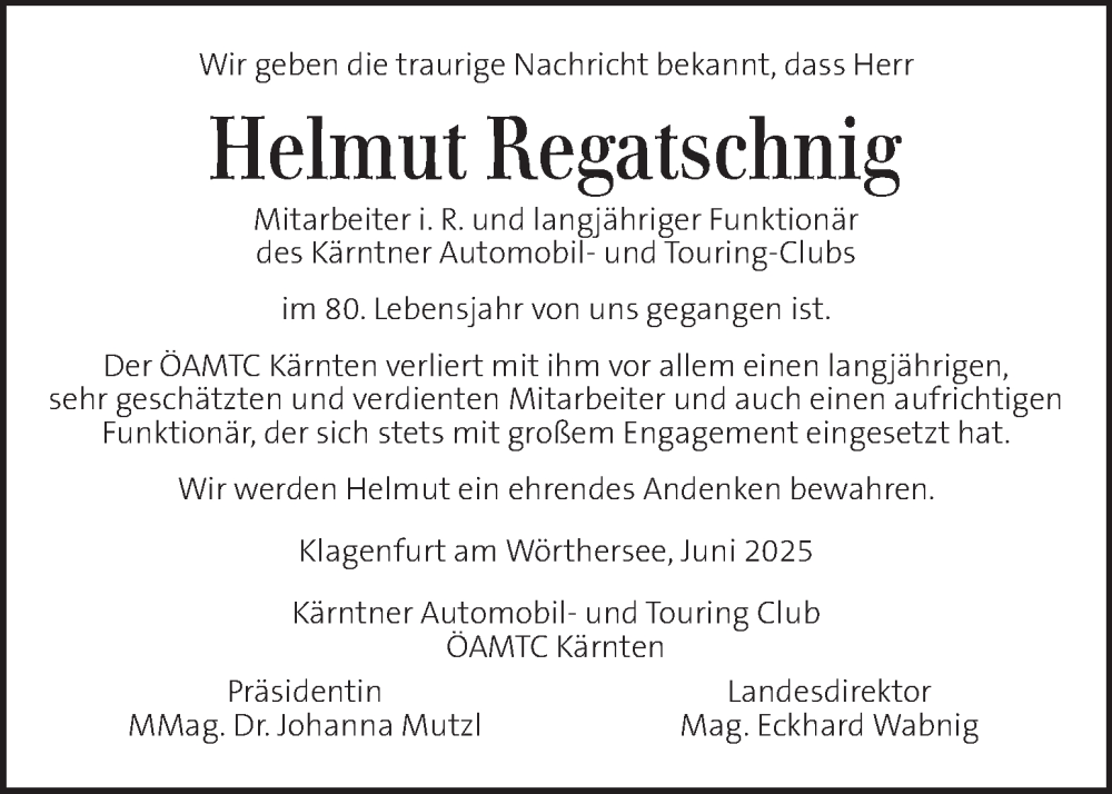 Hier finden Sie alle Traueranzeigen aus der Zeitung, die bisher für Helmut Regatschnig erschienen sind. Weitere Traueranzeigen, die in der Zeitung erscheinen, werden hier ebenfalls aufgelistet