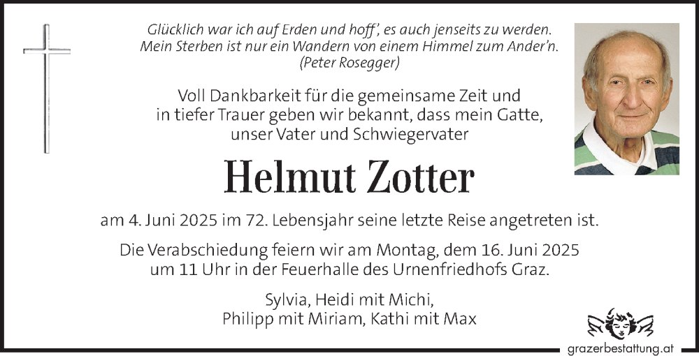 Hier finden Sie alle Traueranzeigen aus der Zeitung, die bisher für Helmut Zotter erschienen sind. Weitere Traueranzeigen, die in der Zeitung erscheinen, werden hier ebenfalls aufgelistet