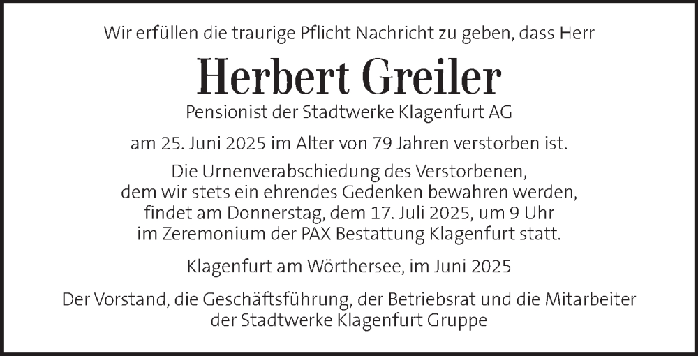 Hier finden Sie alle Traueranzeigen aus der Zeitung, die bisher für Herbert Greiler erschienen sind. Weitere Traueranzeigen, die in der Zeitung erscheinen, werden hier ebenfalls aufgelistet
