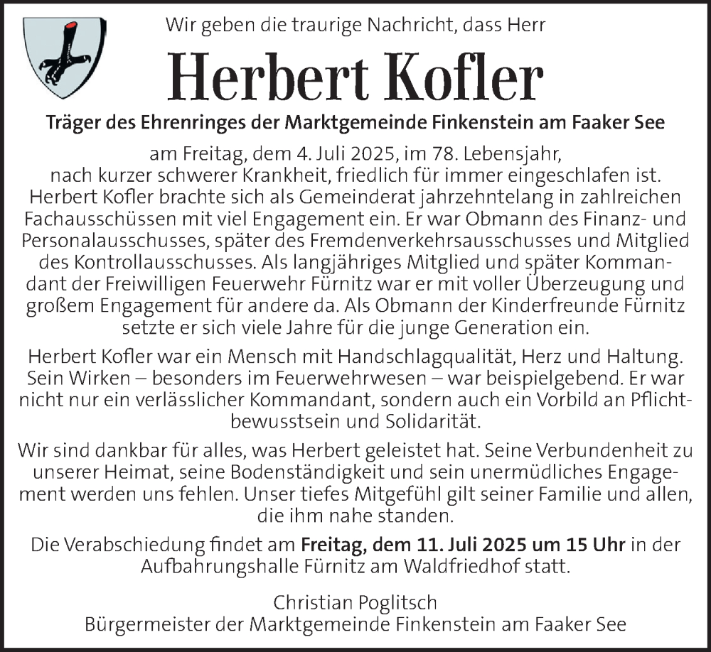 Hier finden Sie alle Traueranzeigen aus der Zeitung, die bisher für Herbert Kofler erschienen sind. Weitere Traueranzeigen, die in der Zeitung erscheinen, werden hier ebenfalls aufgelistet