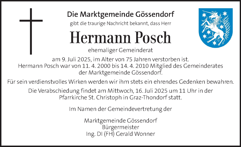 Hier finden Sie alle Traueranzeigen aus der Zeitung, die bisher für Hermann Posch erschienen sind. Weitere Traueranzeigen, die in der Zeitung erscheinen, werden hier ebenfalls aufgelistet