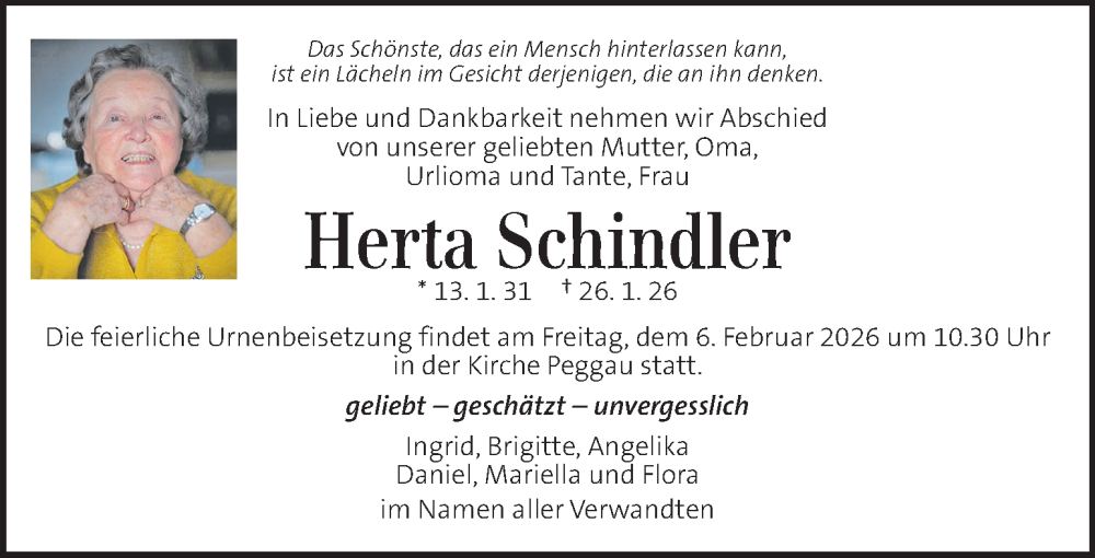 Hier finden Sie alle Traueranzeigen aus der Zeitung, die bisher für Herta Schindler erschienen sind. Weitere Traueranzeigen, die in der Zeitung erscheinen, werden hier ebenfalls aufgelistet