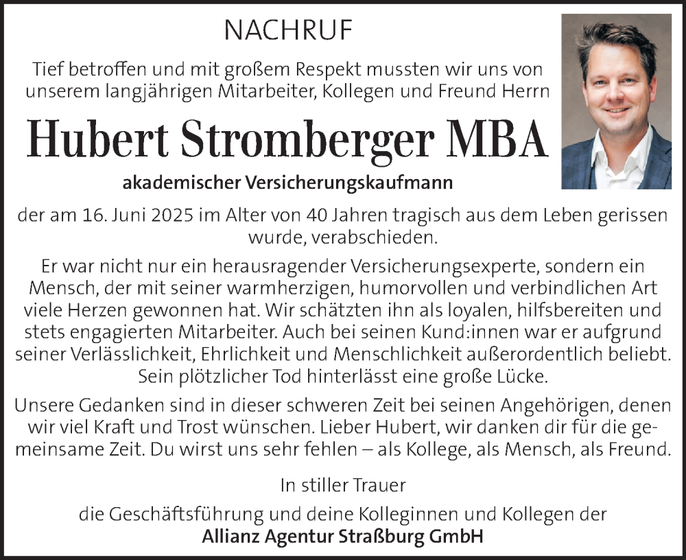 Hier finden Sie alle Traueranzeigen aus der Zeitung, die bisher für Hubert Stromberger erschienen sind. Weitere Traueranzeigen, die in der Zeitung erscheinen, werden hier ebenfalls aufgelistet