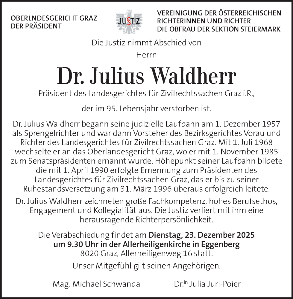 Hier finden Sie alle Traueranzeigen aus der Zeitung, die bisher für Julius Waldherr erschienen sind. Weitere Traueranzeigen, die in der Zeitung erscheinen, werden hier ebenfalls aufgelistet