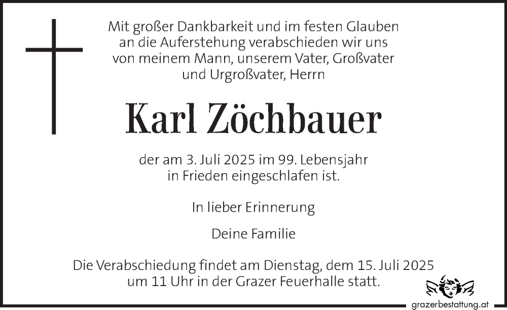 Hier finden Sie alle Traueranzeigen aus der Zeitung, die bisher für Karl Zöchbauer erschienen sind. Weitere Traueranzeigen, die in der Zeitung erscheinen, werden hier ebenfalls aufgelistet
