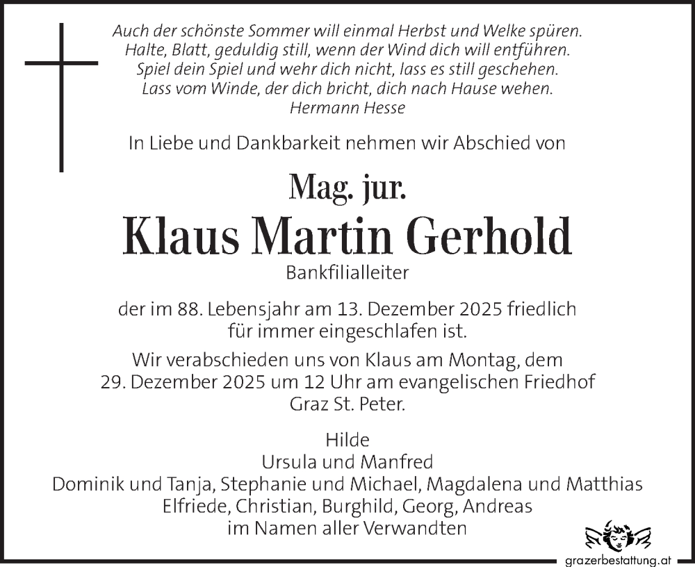 Hier finden Sie alle Traueranzeigen aus der Zeitung, die bisher für Klaus Martin Gerhold erschienen sind. Weitere Traueranzeigen, die in der Zeitung erscheinen, werden hier ebenfalls aufgelistet