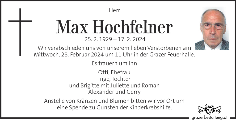 Hier finden Sie alle Traueranzeigen aus der Zeitung, die bisher für Max Hochfelner erschienen sind. Weitere Traueranzeigen, die in der Zeitung erscheinen, werden hier ebenfalls aufgelistet
