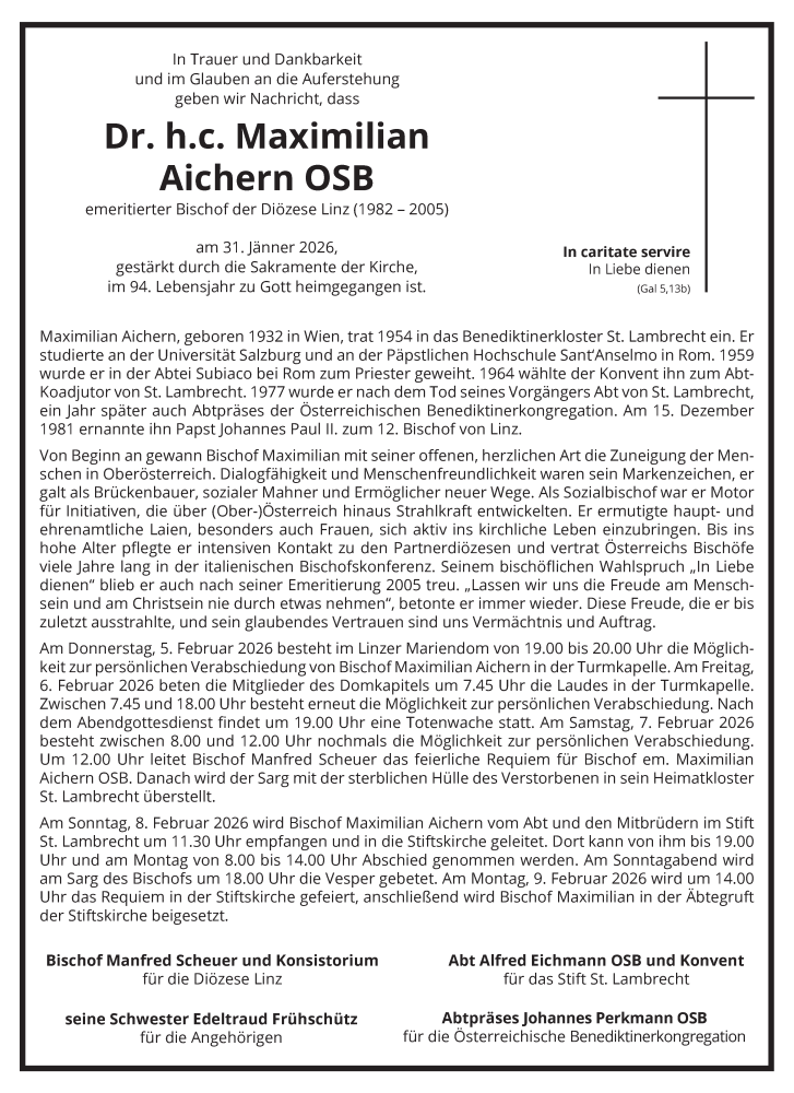 Hier finden Sie alle Traueranzeigen aus der Zeitung, die bisher für Maximilian Aichern erschienen sind. Weitere Traueranzeigen, die in der Zeitung erscheinen, werden hier ebenfalls aufgelistet