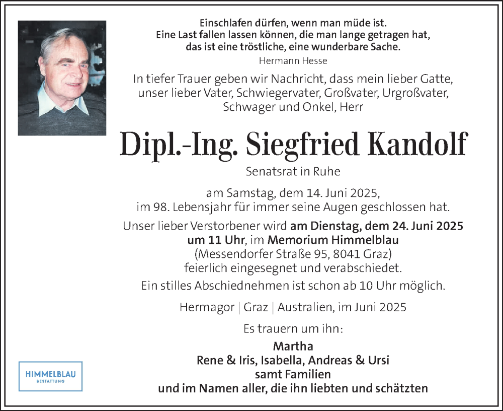 Hier finden Sie alle Traueranzeigen aus der Zeitung, die bisher für Siegfried Kandolf erschienen sind. Weitere Traueranzeigen, die in der Zeitung erscheinen, werden hier ebenfalls aufgelistet