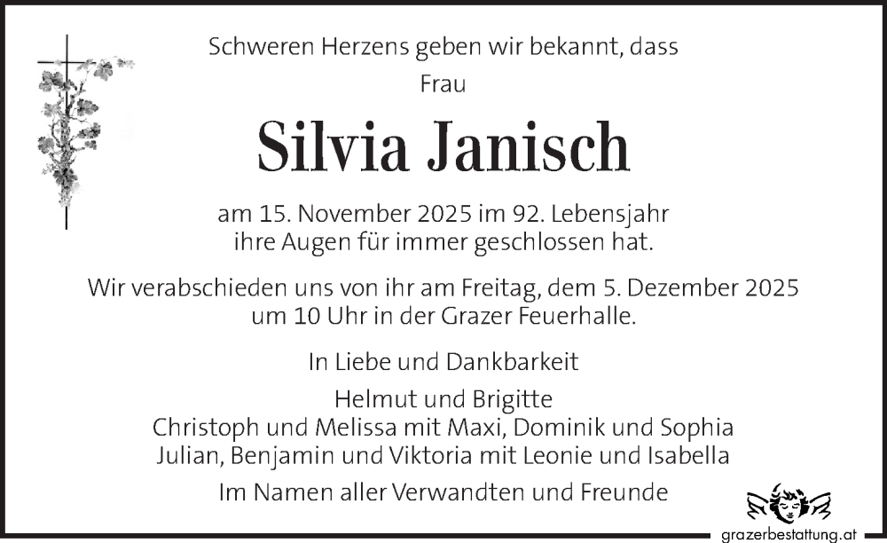 Hier finden Sie alle Traueranzeigen aus der Zeitung, die bisher für Silvia Janisch erschienen sind. Weitere Traueranzeigen, die in der Zeitung erscheinen, werden hier ebenfalls aufgelistet