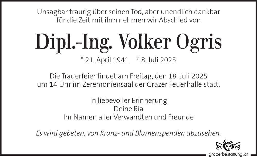 Hier finden Sie alle Traueranzeigen aus der Zeitung, die bisher für Volker Ogris erschienen sind. Weitere Traueranzeigen, die in der Zeitung erscheinen, werden hier ebenfalls aufgelistet